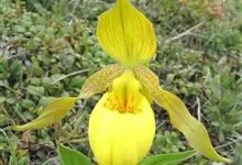 黄花杓兰:植株通常高30-50厘米,具粗短的根状茎。茎直立,密被短柔毛,基部具数枚鞘,鞘上方具3-6枚叶。叶片椭圆形至椭圆状披针形。花序顶生,通常具1花,罕有2花;花黄色,有时有红色晕,…全部>>