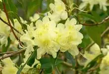 黄花杜鹃:灌木,高1-3米。幼枝细长,疏生鳞片。叶散生,叶片纸质,披针形、长圆状披针形或卵状披针形。花1-3朵顶生或生枝顶叶腋;宿存的花芽鳞覆瓦状排列;花萼不发育,波状5裂或环状;花冠宽漏斗状,略呈…全部>>