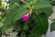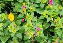 即紫茉莉,英文名:Four-o'clock,Marvel of Peru,为紫茉莉科、紫茉莉属多年生草本植物,一年生栽培。株高50~80cm。根粗壮,茎多分枝而散生。叶对生,卵形或心脏形。花数朵簇生…全部>>