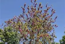 红花刺槐是豆科刺槐属的植物。其干皮深纵裂;枝具托叶刺,羽状复叶互生,叶片卵形或长圆形,具芒尖;基部圆形。花两性;总花序下垂;花冠粉红色,芳香;果条状长圆形,腹缝有窄翅。花期4~5月,果期9~10月。…全部>>