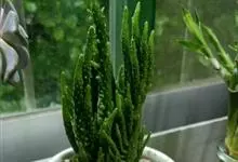 筒叶花月,是景天科青锁龙属的多年生草本植物。植株多分株,灌木状,茎较粗壮,圆柱形,表皮灰褐色;叶片肉质,互生,呈圆筒状,簇生于茎或分枝顶端,叶端呈斜截形,截面为椭圆形;花呈星状,淡白色;花期秋季。…全部>>