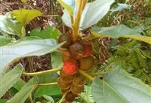 聚果榕是桑科榕属植物,乔木,高达25-30米,胸径60-90厘米,树皮灰褐色。叶薄革质,椭圆状倒卵形至椭圆形或长椭圆形,长10-14厘米,宽3.5-4.5厘米。榕果聚生于老茎瘤状短枝上,…全部>>