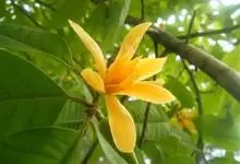 黄缅桂是木兰科、含笑属植物。常绿乔木,高达10余米;芽、嫩枝、嫩叶和叶柄均被淡黄色的平伏柔毛。叶薄革质,披针状卵形或披针状长椭圆形,下面稍被微柔毛。花黄色,极香,花被片15~20片,倒披针形,…全部>>