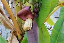 香蕉’),芭蕉科芭蕉属多年生草本植物,植株丛生,有匐匍茎;假茎浓绿有黑色斑点;叶片长圆形,上面为深绿色,无白粉,下面浅绿色;花朵为乳白色或淡紫色;果实呈弯曲的弓状,有棱,果皮为青绿色,…全部>>