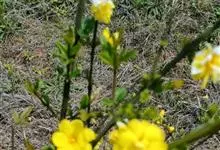 迎春花,木犀科素馨属的多年生木本植物,小枝细长直立或者呈拱形下垂;叶片呈卵形或椭圆形;花单生于叶腋处,苞片呈披针形或椭圆形,花冠为金黄色,花瓣通常为倒卵形或椭圆形;花期在6月。…全部>>