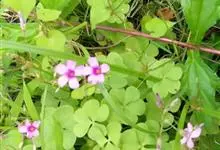 红花酢浆草别名铜锤草、大酸味草、幸运草等,是酢浆草科酢浆草属的多年生直立草本植物。其无地上茎,地下部有球状鳞茎;叶基生,叶柄长5~30cm或更长,被毛;花瓣5,倒心形,淡紫色至紫红色,基部颜色较深。…全部>>