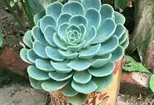 蓝石莲是景天科、拟石莲花属的多肉植物。茎部粗壮,成熟植株茎部木质化。叶片莲座型密集排列,株径不会很大,叶片相对较薄,常年绿色,表面布有白色粉末,中部凹陷,呈倒水滴状。叶尖较尖,叶缘光滑无褶皱,…全部>>