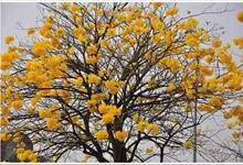 黄金风铃木Nichols),别称:黄花风铃木、黄丝风铃木、金花风铃木、伊蓓树、毛风铃、巴西风铃木。原产墨西哥、中美洲、南美洲,是巴西的国花。每年3、4月开花,花冠漏斗形、五裂,似风铃状,花缘皱曲,花…全部>>