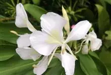姜花又名野姜花。是姜科姜花属的多年生草本植物,茎高1-2米;叶片长圆状披针形或披针形,叶面光滑,叶背被短柔毛;穗状花序顶生,椭圆形,花芬芳,白色;蒴果卵状三棱形,微黄绿色;种子鲜红色,具橘红色的假种皮。…全部>>
