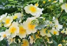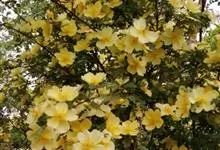 黄木香花 Rehd.)是蔷薇科、蔷薇属植物,为木香花的变型品种,攀缘小灌木,高可达6米。小叶3-5枚,稀7枚,小叶片椭圆形或长圆状披针形,先端急尖或稍钝,基部近圆形或宽楔形,边缘有紧贴细锯齿。花小型,…全部>>