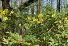 迎春花,木犀科素馨属的多年生木本植物,小枝细长直立或者呈拱形下垂;叶片呈卵形或椭圆形;花单生于叶腋处,苞片呈披针形或椭圆形,花冠为金黄色,花瓣通常为倒卵形或椭圆形;花期在6月。…全部>>