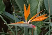 鹤望兰,别名天堂鸟,为鹤望兰科鹤望兰属的一种多年生草本植物;无木质树干;花序生于与叶柄近等长或稍短的花序梗上,佛焰苞1;花较小,萼片橙黄色,长7.5-10厘米,箭头状花瓣基部具耳状裂片,…全部>>