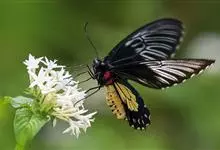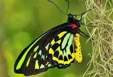 金裳凤蝶是凤蝶科、裳凤蝶属的动物。金裳凤蝶身体呈黑色,头、颈和胸侧有红毛,腹部有黑黄两色相间条纹,雄蝶前翅黑色,具黑天鹅绒光泽,各脉两侧灰白色,后翅金黄色,各室外缘有等腰三角形黑斑1枚,斑内侧有晕,…全部>>