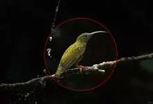 普通缝叶莺,是雀形目鹅科莺亚科缝叶莺属一种。体长10-14厘米,体重7-10克,雄鸟前额棕红,头顶至枕棕橄榄褐,上体橄榄绿染黄,飞羽及尾羽暗褐;繁殖期雄鸟的中央尾羽特形延长,下体淡皮黄白色。…全部>>