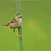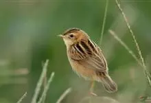 金头扇尾莺体小而具褐色纵纹的莺。嘴细长,略向下弯;翼短,体型娇小,尾长。下体皮黄,喉近白,尾深褐,尾端皮黄。雌雄羽色相近,羽色单调。繁殖期雄鸟顶冠亮金色,腰褐色。雌鸟及非繁殖期雄鸟头顶密布黑色细纹,…全部>>