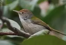 普通缝叶莺,是雀形目鹅科莺亚科缝叶莺属一种。体长10-14厘米,体重7-10克,雄鸟前额棕红,头顶至枕棕橄榄褐,上体橄榄绿染黄,飞羽及尾羽暗褐;繁殖期雄鸟的中央尾羽特形延长,下体淡皮黄白色。…全部>>