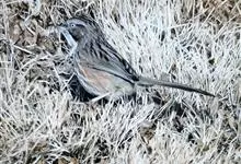 金眼鹛雀是莺科、鹛雀属小型鸟类。体长16-20厘米。头顶和上体棕褐色,两翅表面肉桂红色,尾褐色具明暗相间横斑。眼周金黄色,眼先、眼上、眼下、颊以及颏、喉和上胸概为白色,其余下体茶黄色,脚橙黄色。…全部>>
