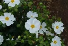 岩蔷薇是半日花科岩蔷薇属植物,多年生直立亚灌木,高约1.5-2.5米,全体具胶黏腺体。枝条褐色,侧枝分为生长枝和结果枝。单叶对生,披针形至线状披针形,长5-8厘米,宽0.5-1.5厘米。…全部>>