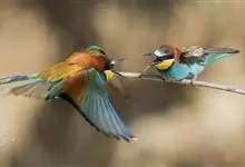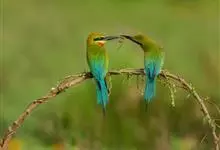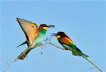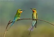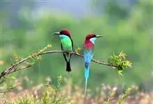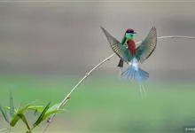 蓝颊蜂虎:是蜂虎科、蜂虎属的鸟类,共有2个亚种。体长27-33厘米,翼展46-49厘米,体重38-50克。嘴形细长而下弯,先端尖,…全部>>
