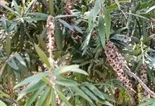 垂枝红千层 Cheel.)是桃金娘科红千层属植物,常绿灌木或小乔木,高可达6米;树皮暗灰色,不易剥离;幼枝和幼叶有白色柔毛。叶互生,条形,长3-8厘米,宽2-5毫米。穗状花序,有多数密生的花;花期长,…全部>>