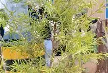 千层金是桃金娘科白千层属植物,常绿乔木。树高可达6-8米,冠幅锥形。主干直立,枝条密集、细长、柔软,嫩枝红色。叶片金黄色,披针形,长2-2.5米,宽0.2厘米左右,具芳香味。穗状花序,花瓣绿白色。果…全部>>