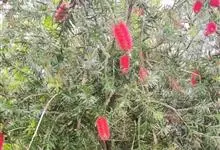 垂枝红千层 Cheel.)是桃金娘科红千层属植物,常绿灌木或小乔木,高可达6米;树皮暗灰色,不易剥离;幼枝和幼叶有白色柔毛。叶互生,条形,长3-8厘米,宽2-5毫米。穗状花序,有多数密生的花;花期长,…全部>>