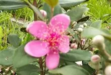 桃金娘 Hassk.),桃金娘科,桃金娘属灌木植物,其高可达2米;幼枝密被柔毛;叶对生,椭圆形或倒卵形;花有长梗,常单生,紫红色,花药圆形;果为浆果,卵状壶形,熟时紫黑色;花期4、5月,…全部>>