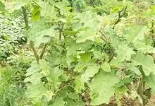 乳茄,茄科茄属直立草本植物,覆盖短的柔毛和扁平尖刺,小枝覆盖长柔毛和扁平刺,刺为蜡黄色,光亮;叶片卵形,两面附有浓密亮白色极长的长柔毛;乳茄花蝎尾状腋外生,覆盖有与枝、叶相似的柔毛;浆果倒梨形状,…全部>>
