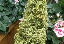 金边黄杨是卫矛科卫矛属的常绿灌木或小乔木,金边黄杨小枝略为四棱形,枝叶密生;单叶对生,倒卵形或椭圆形,边缘具钝齿,表面深绿色,有光泽;聚伞花序腋生,具长梗,花绿白色;蒴果球形,淡红色;花期5~6月。…全部>>