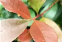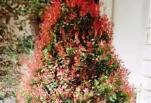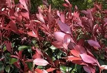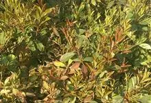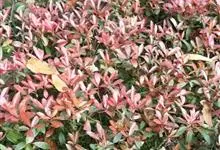 红叶石楠 是蔷薇科,石楠属杂交种,为常绿小乔木或灌木,乔木高可达5米、灌木高可达2米。叶片革质,长圆形至倒卵状、披针形,叶端渐尖,叶基楔形,叶缘有带腺的锯齿,花多而密,复伞房花序,花白色,梨果黄红色,…全部>>