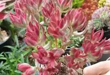 女王花笠,又名扇贝石莲花、女王花舞笠,是景天科拟石莲花属的多肉植物。由美国加利福尼亚州的育种师Dick Wright于1964年培育。特征是呈大波浪状褶皱的红色叶缘和气质高贵的粉紫色调。…全部>>