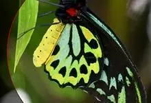 金裳凤蝶是凤蝶科、裳凤蝶属的动物。金裳凤蝶身体呈黑色,头、颈和胸侧有红毛,腹部有黑黄两色相间条纹,雄蝶前翅黑色,具黑天鹅绒光泽,各脉两侧灰白色,后翅金黄色,各室外缘有等腰三角形黑斑1枚,斑内侧有晕,…全部>>