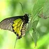 荧光裳凤蝶是凤蝶科裳凤蝶属的一种大型蝴蝶,该物种共有3个亚种。该蝶飞翔的时候姿态优美,前翅黑色,后翅金黄色和黑色交融的斑纹在阳光照射下金光灿灿,显得华贵美丽。幼虫寄主为多种马兜铃属的植物,取食马兜铃…全部>>