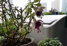 倒挂金钟是柳叶菜科倒挂金钟属亚灌木植物。茎直立,多分枝;幼枝带红色,被短柔毛与腺毛,老时渐无毛;叶对生,卵形或窄卵形,脉常带红色;常带红色,被短柔毛与腺毛;花筒红色,筒状钟形,…全部>>