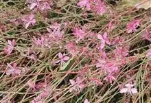 山桃草是柳叶菜科、山桃草属植物。多年生宿根草本。高60-100厘米,叶无柄,椭圆状披针形或倒披针形,花期晚春至初秋;多花型,花蕾白色略带粉红,初花白色,谢花时浅粉红。花紫红色,成密生的穗状花序,…全部>>