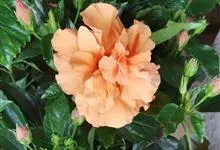 重瓣朱槿是锦葵科、木槿属常绿灌木植物;小枝疏被星状柔毛单叶互生,卵形或卵状披针形,基部圆形;叶柄长;托叶早落;花重瓣,较朱槿为大;花萼小,钟形,基部具有苞片多枚;花瓣多枚排列成彩球状,…全部>>