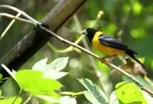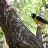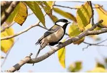 黄颈拟蜡嘴雀:小型鸟类,体长20-22厘米。嘴粗大,黑色。雄鸟整个头、颈、颏、喉和上胸辉黑色,两翅和尾亦为黑色,其余上体橙黄色,下体鲜黄色。雌鸟头、颈、颏、喉和上胸中央灰色或暗灰色,…全部>>