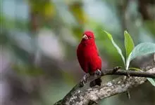 普通朱雀是雀形目雀科朱雀属鸟类,又名红朱雀、马料、青麻料。雄鸟上体红色,下体淡红色;头部、喉部、胸部及腰部亮红色;背部褐色染红色;两翼及尾黑褐色,羽缘染红色。雌鸟上体橄榄褐色,下体近白色,…全部>>