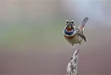 蓝点颏亦称“蓝喉歌鸲”,通称蓝靛颏儿。身体大小和麻雀相似,体长12-13厘米,体重17-18克。头部、上体主要为土褐色。眉纹白色。尾羽黑褐色,基部栗红色。颏部、喉部辉蓝色,下面有黑色横纹。下体白色。…全部>>