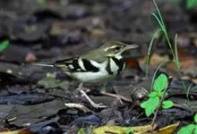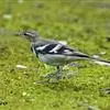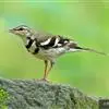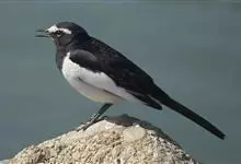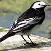日本鹡鸰:体长约20厘米。上体多黑色,额、颏及眉纹白,下体白,两翼黑而具白色横斑及羽缘,尾黑而边缘白色。虹膜深褐色;嘴黑色;脚黑色。飞行时发出嘁喳声,具复杂而独特的鸣声。喜农田、稻田和溪流。…全部>>