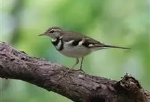 山鹡鸰:是中等体型的林鹡鸰,体长约17厘米,主要羽色为褐色及黑白色。头部和上体橄榄褐色,眉纹白色,从嘴基直达耳羽上方,下体白色,胸部具有两道黑色横斑纹,下面的横斑纹有时不连续。两翼黑褐色,…全部>>