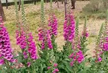 毛地黄是车前科、毛地黄属一年生或多年生草本植物。株高0.5—1米,茎直立,少分枝,全株被灰白色短柔毛和腺毛叶基生,呈莲座状,卵圆形或卵状披针形。顶生总状花序,花冠钟状,紫红色,内面有浅白斑点。菊果卵形。…全部>>