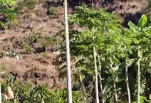 麻竹是禾本科牡竹属常绿乔木状竹类植物。茎秆高20-25米,径15-30厘米,梢端弓形下弯,新杆被白粉,基部数节节间具黄褐色毛环,箨环常有箨鞘基部的残余物;小枝叶鞘背面疏生易脱落刺毛,叶耳不明显或无,…全部>>