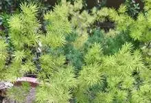 蓬莱松是天门冬科、天门冬属多年生丛生草本植物。宿存,圆柱形肉质根,纵截面为绿色和表面灰色。植株高可达3米。茎呈圆柱形或近四边形,底部木质化,具有灰色或灰褐色。幼嫩的茎在每个节上都被紫绿色鳞片包,…全部>>