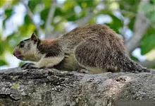 巨松鼠也称为树狗、黑狸、藤狸、黑果狸、黑大松鼠或马来亚大松鼠,为一种大型啮齿类动物。栖息于海拔2000米以下的热带、亚热带季雨林的高树上,是典型的树栖动物。分布于亚洲东南部,…全部>>