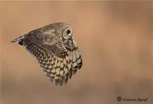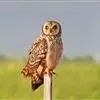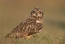 短耳鸮又名小耳木兔、田猫王、夜猫子等,是鸮形目鸱鸮科耳鸮属中小型猛禽动物。成鸟面盘显著,眼周黑色;眼先及内侧眉纹灰白色,面盘余部棕黄色杂以黑色细羽干纹;耳簇羽短小而几乎不外露,…全部>>