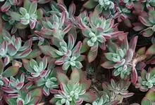 锦晃星是景天科、石莲花属多肉植物。多年生小灌木状多浆植物,灰绿色卵状倒披针形肥厚肉质叶轮状互生,全缘,椭圆尖头,长3-4厘米,宽2-2.5厘米,厚约1厘米,玲凉季节阳光下,叶端及上缘呈红色。…全部>>