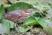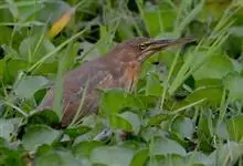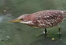 紫背苇鳽是鹭科、苇鳽属动物,为涉禽,体长约33厘米。头顶黑色,后头至尾上覆羽暗栗褐色;翅上覆羽橄榄黄色;下体浅棕黄色。多生活于水库和山脚边的稻田、芦苇丛、滩涂及沼泽草地,在西藏见于海拔2300米的农田,…全部>>