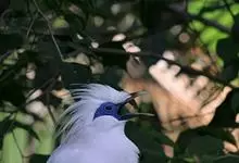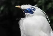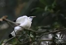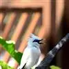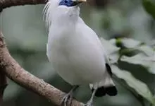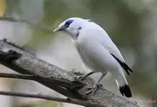 长冠八哥:是一种大型椋鸟,体长约25厘米,雌雄相似,外形俊朗,羽冠发达,眼睛四周和面部裸出,裸露部分为蓝色,全身羽毛纯白色,尾部和翼端的边缘呈黑色,脚灰色。全身白色,具较长冠羽,…全部>>