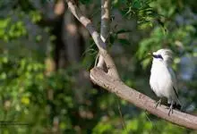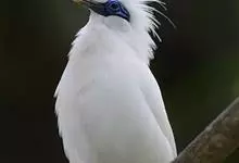 长冠八哥:是一种大型椋鸟,体长约25厘米,雌雄相似,外形俊朗,羽冠发达,眼睛四周和面部裸出,裸露部分为蓝色,全身羽毛纯白色,尾部和翼端的边缘呈黑色,脚灰色。全身白色,具较长冠羽,…全部>>